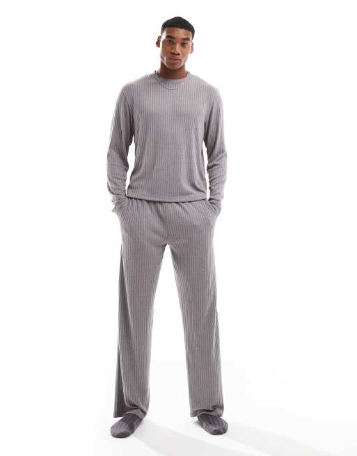 Conjunto de estar por casa gris oscuro de camiseta de corte cuadrado y manga larga de ASOS DESIGN