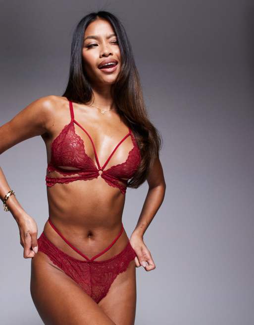 Conjunto de lencería burdeos con diseño de tiras de encaje Kimmy de ASOS DESIGN