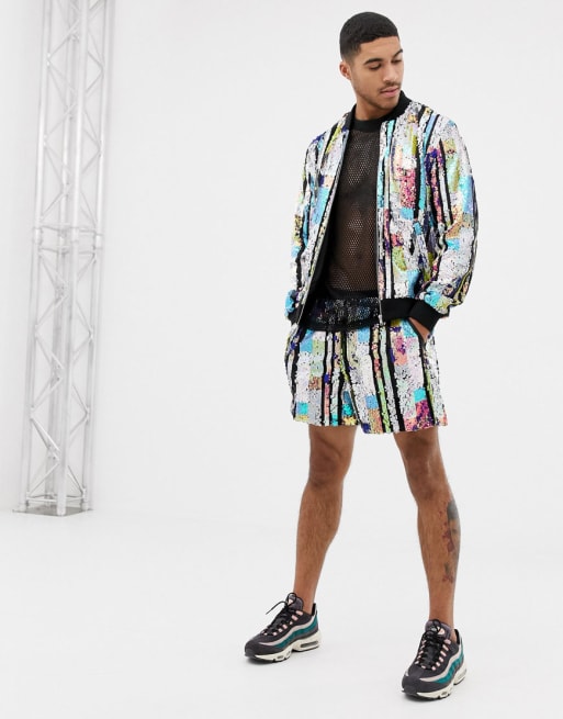 Conjunto de lentejuelas con rayas de malla de ASOS DESIGN