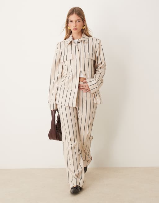 Conjunto de sastre color crudo a rayas de camisa y pantalones holgados de ASOS DESIGN