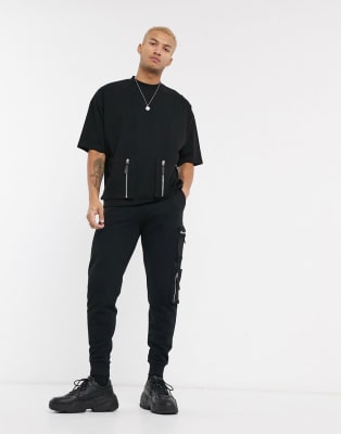 Conjunto de tejido grueso negro con bolsillos utilitarios con cremallera de ASOS DESIGN
