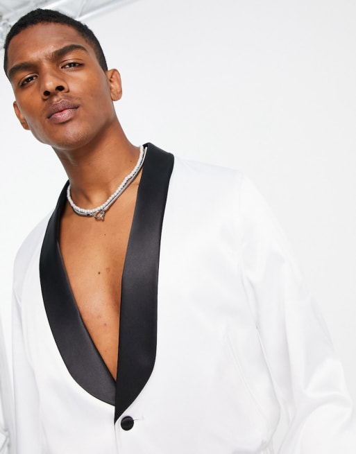 Conjunto de vestir blanco con pliegues y cuello esmoquin de ASOS DESIGN