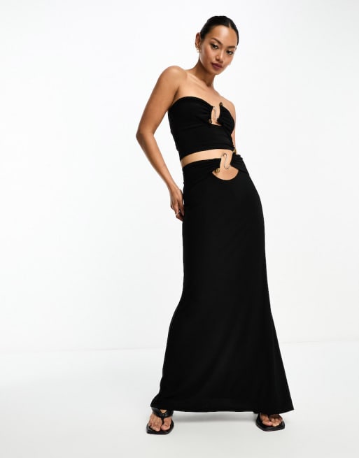 Conjunto negro de falda larga con abertura y detalle de metal de ASOS DESIGN