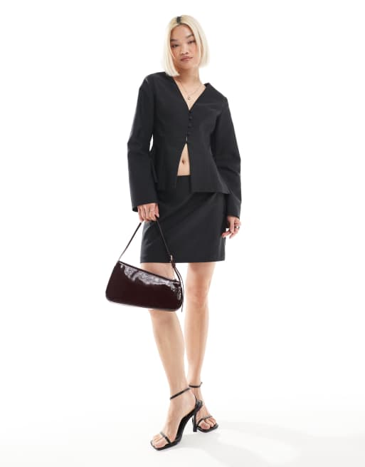 Conjunto negro de minifalda muy corta y americana con cintura entallada de ASOS DESIGN