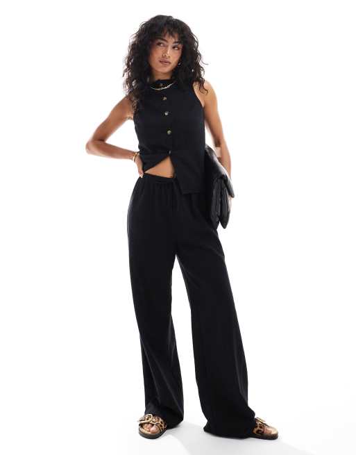Conjunto negro de pantalones y chaleco de tejido efecto lino de ASOS DESIGN