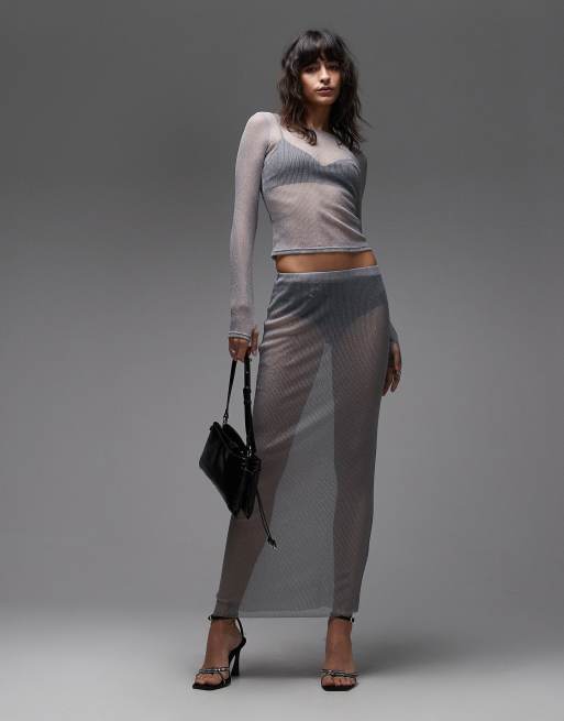 Conjunto plateado metalizado de falda y top de punto semitransparente de ASOS DESIGN