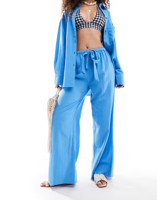 Conjunto playero azul de lino Isabel Mix & Match de ASOS DESIGN