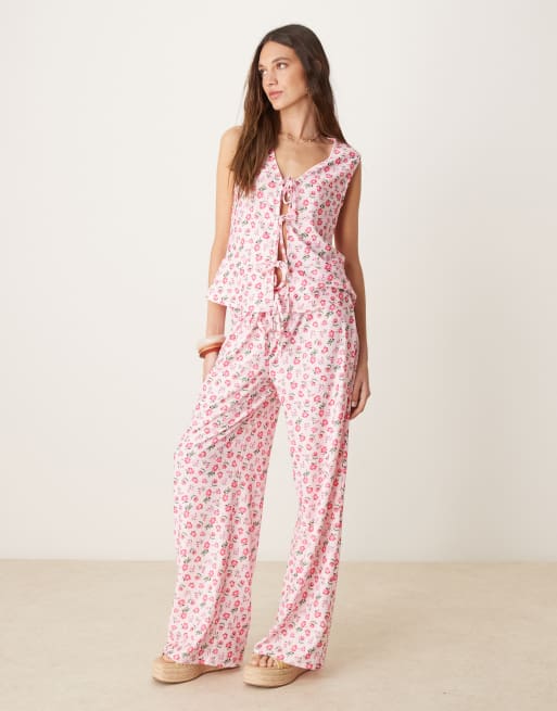 Conjunto rosa con estampado de florecitas y volantes de ASOS DESIGN