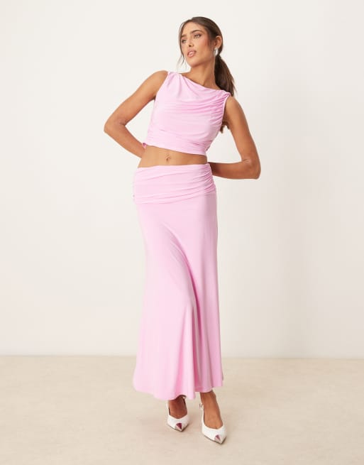 Conjunto rosa de falda larga y top drapeado y fruncido con espalda escotada de ASOS DESIGN