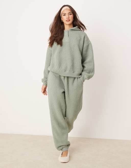 Conjunto verde salvia de estar por casa de joggers y sudadera extragrande con capucha de borreguito de ASOS DESIGN