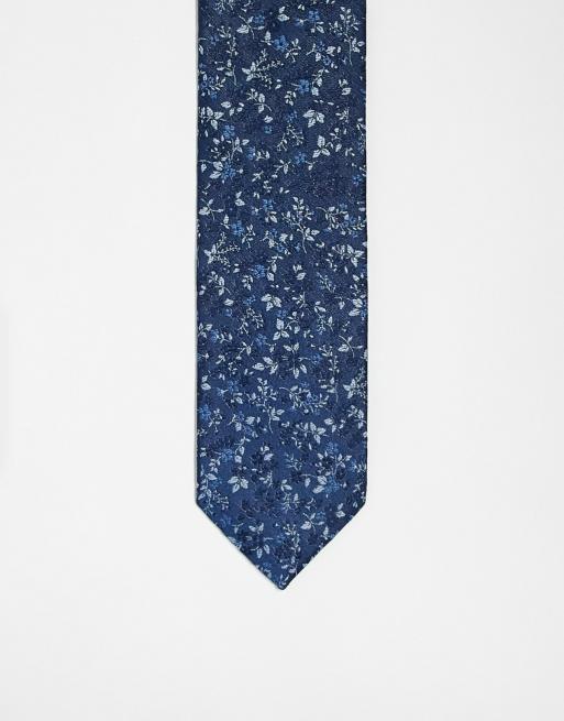 Corbata azul marino con diseño floral de ASOS DESIGN