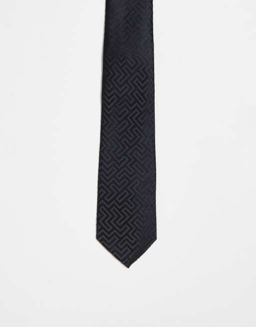 Corbata negra ancha con estampado geométrico en el mismo tono de ASOS DESIGN