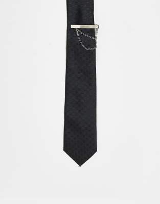 Corbata negra estrecha con detalle de pasador de ASOS DESIGN