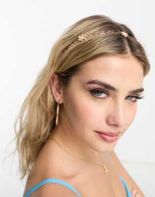 Diadema dorada con diseño de flores y perlas de ASOS DESIGN