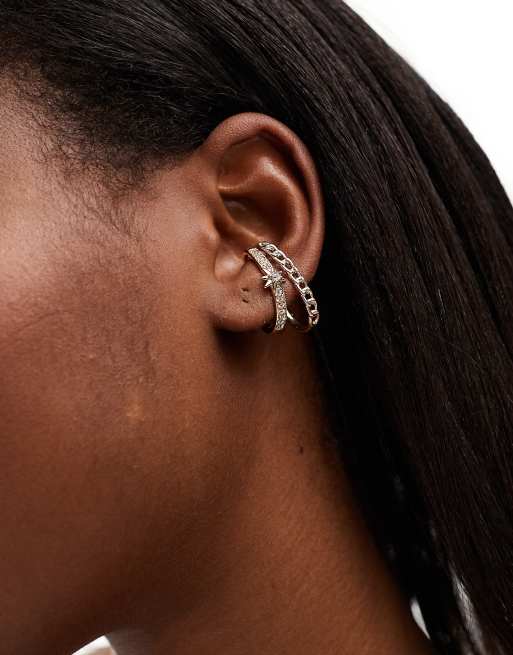 Ear cuff dorado de varias hileras estilo cadena con detalle celestial de ASOS DESIGN
