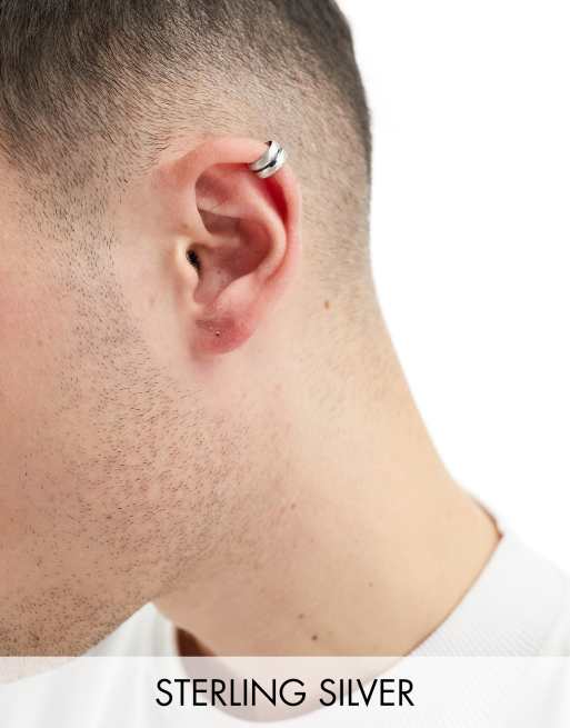 Ear cuff tono plateado bruñido de plata de ley de ASOS DESIGN
