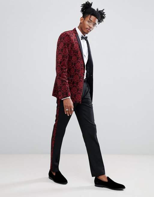 Esmoquin ajustado de terciopelo en cachemir rojo de ASOS