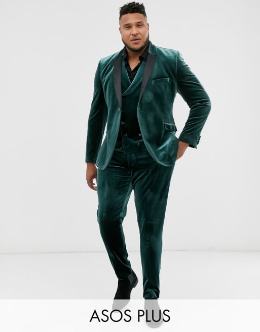 Esmoquin muy ajustado de terciopelo en verde bosque de ASOS DESIGN Plus