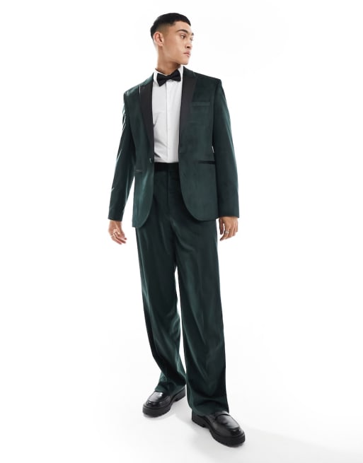 Esmoquin verde entallado de terciopelo de ASOS DESIGN