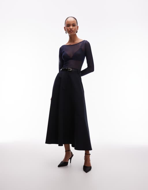 Falda de sastre azul marino de corte circular de ASOS DESIGN
