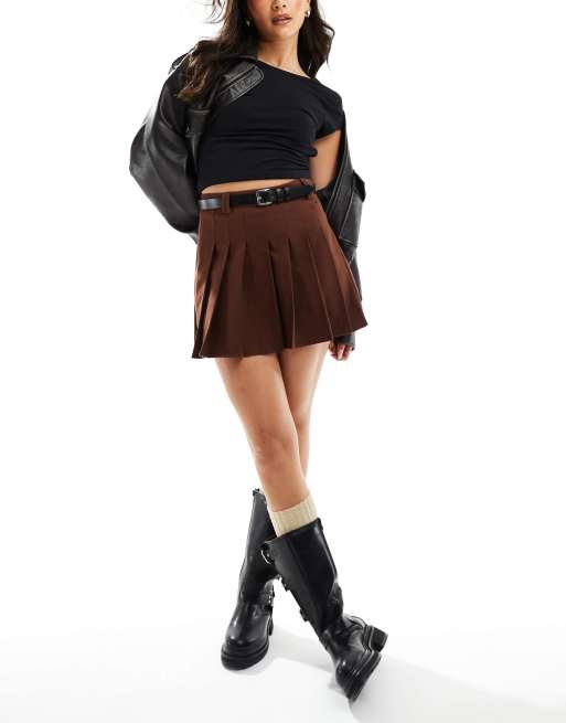 Falda de sastre marrón chocolate de tablas con cinturón de ASOS DESIGN