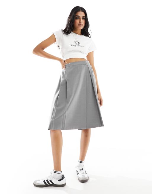 Falda de sastre midi gris plisada de ASOS DESIGN