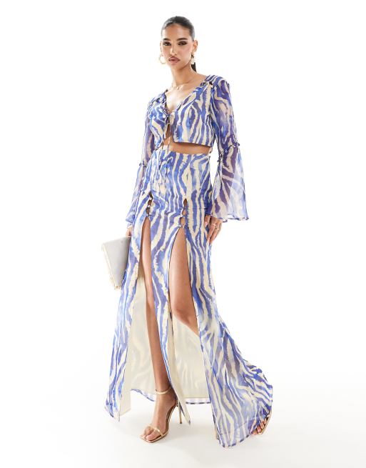 Falda larga azul con estampado de cebra y abertura delantera con detalle de botones de ASOS DESIGN (parte de un conjunto)