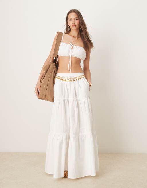 Falda larga blanca escalonada de estilo boho de ASOS DESIGN