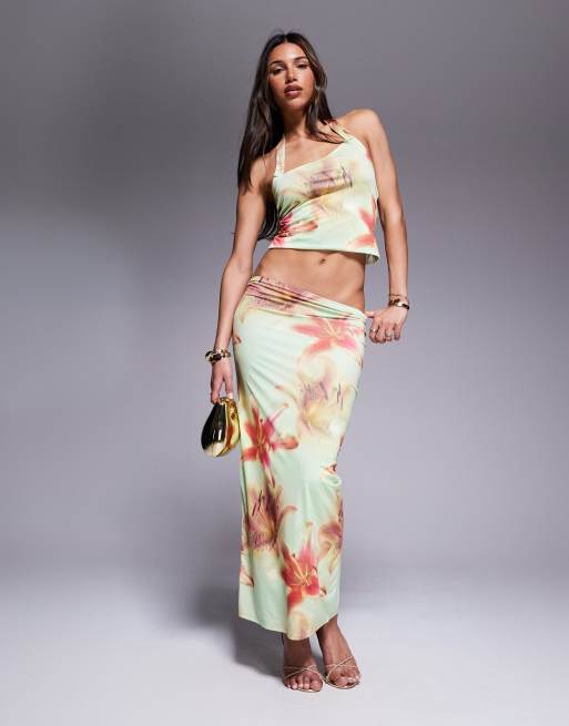 Falda larga ceñida con estampado floral de ASOS DESIGN (parte de un conjunto)