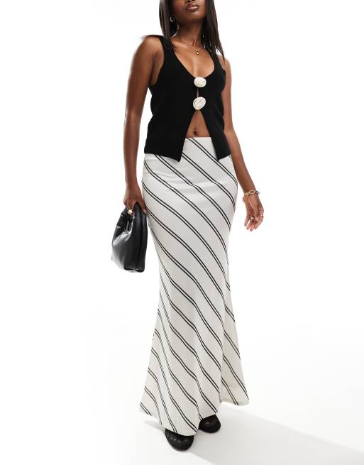 Falda larga color crema a rayas diagonales de satén elástico de ASOS DESIGN