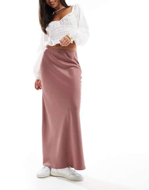 Falda larga cortada al bies de satén en rosa de ASOS DESIGN