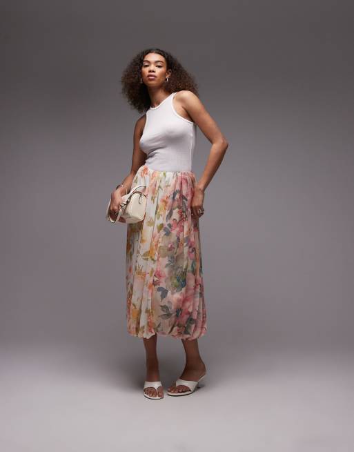 Falda larga drapeada con estampado floral variado dividido de ASOS DESIGN