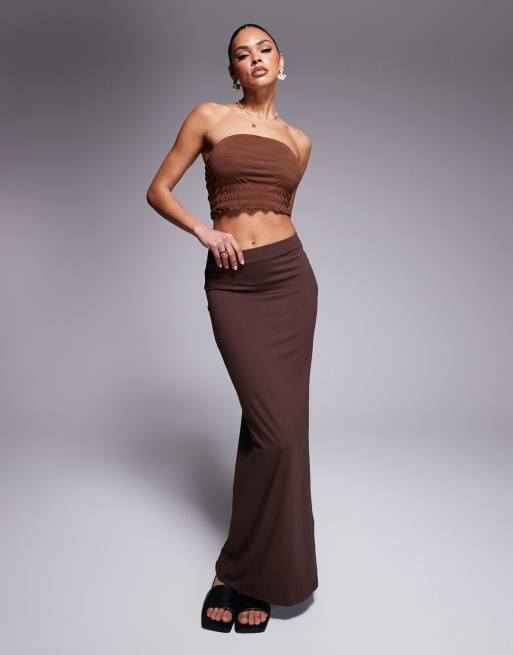 Falda larga marrón chocolate de corte recto de ASOS DESIGN