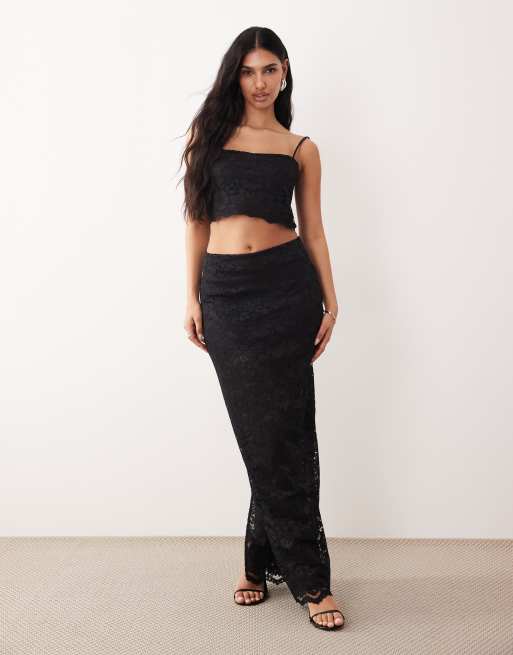 Falda larga negra de encaje de ASOS DESIGN (parte de un conjunto)