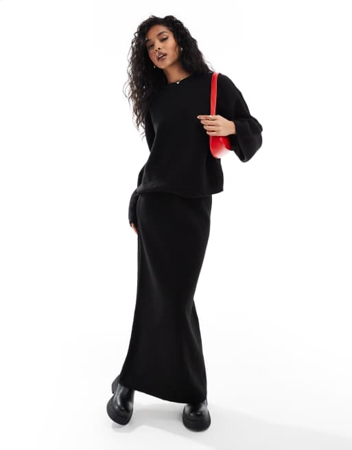 Falda larga negra de punto de ASOS DESIGN (parte de un conjunto)