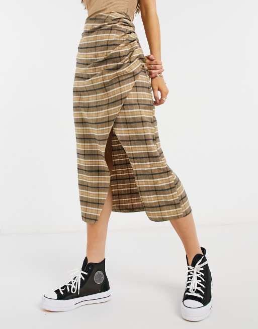 Falda midi a cuadros con diseño cruzado de ASOS DESIGN