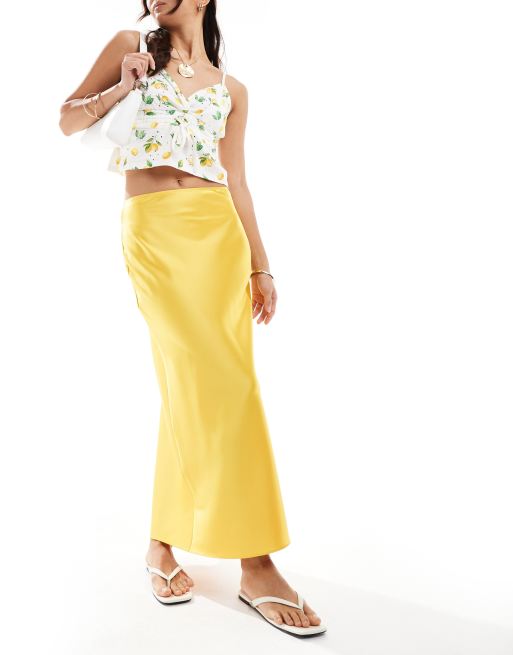 Falda midi amarilla de corte al bies de satén de ASOS DESIGN