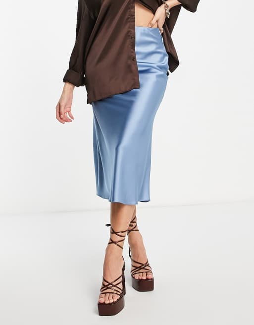 Falda midi azul pálido de corte al bies de satén de ASOS DESIGN