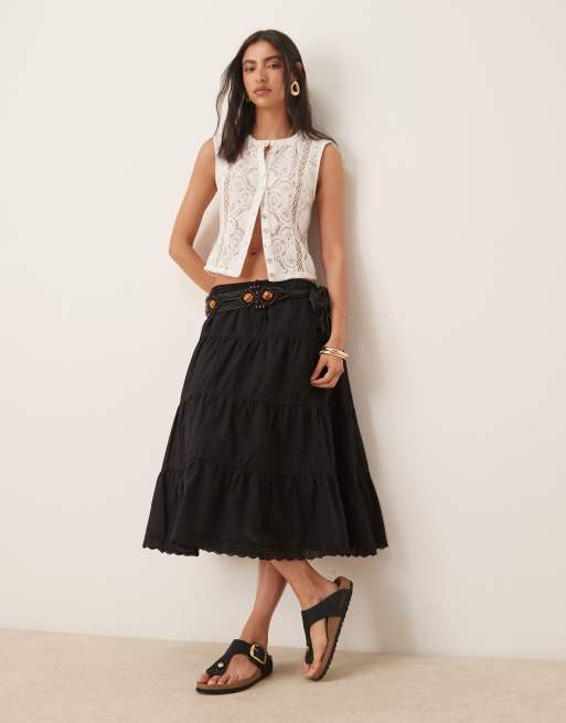 Falda midi blanco marfil escalonada de estilo campero de ASOS DESIGN