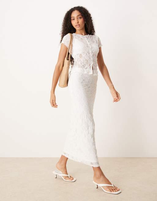 Falda midi blanco marfil traslúcida de encaje texturizado de ASOS DESIGN (parte de un conjunto)