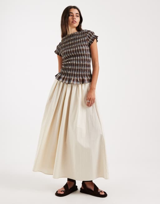 Falda midi color piedra con detalle voluminoso de ASOS DESIGN