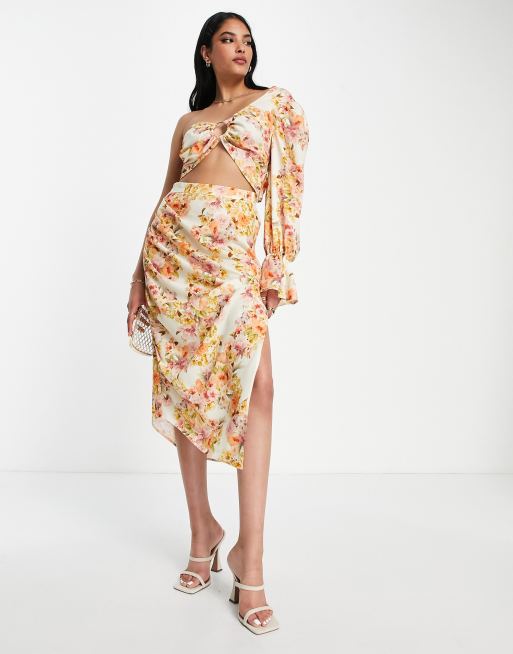 Falda midi con lateral fruncido y estampado floral de ASOS DESIGN (parte de un conjunto)