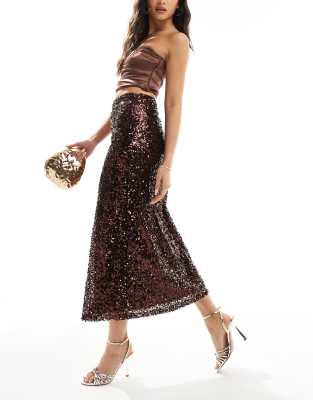 Falda midi marrón de lentejuelas de ASOS DESIGN