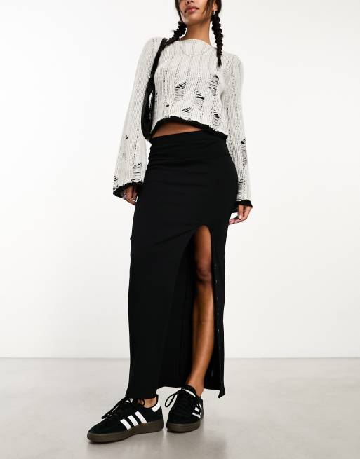 Falda midi negra con abertura con botones de canalé de ASOS DESIGN