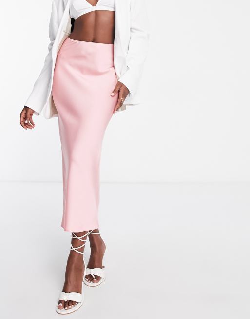 Falda midi rosa claro de corte al bies de satén de ASOS DESIGN