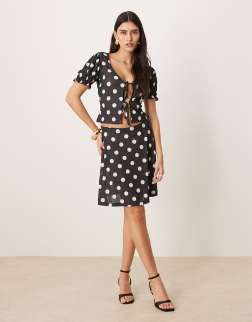 Falda por la rodilla negra de talle bajo con estampado de lunares de canalé de tacto seco de ASOS DESIGN
