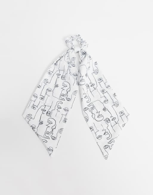 Fular para el cabello en negro y blanco con estampado de rostro de ASOS DESIGN