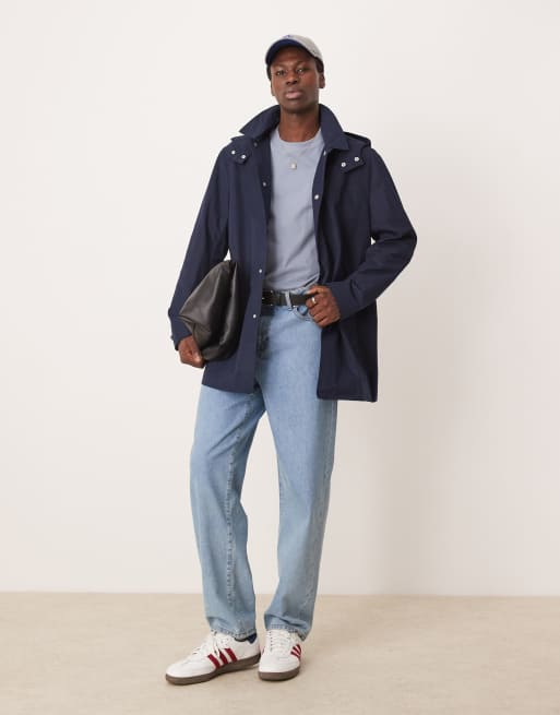 Gabardina corta azul marino con capucha de ASOS DESIGN