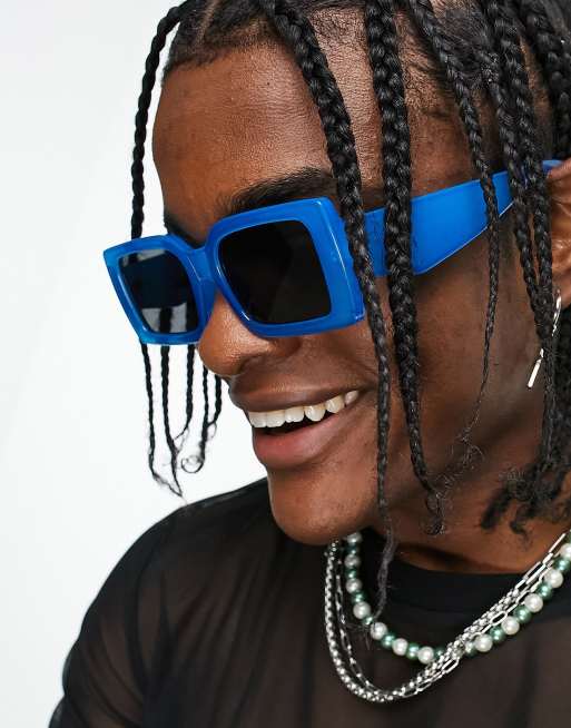 Gafas de sol azul cobalto con montura extragrande rectangular y lentes ahumadas de ASOS DESIGN