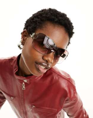 Gafas de sol color bronce extragrandes de estilo envolvente de los años 90 con detalle en las patillas de ASOS DESIGN